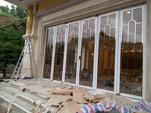4、將內不銹鋼門門扇套上門框,鎖上鎖,把內門安裝片固定在墻上。